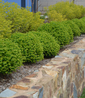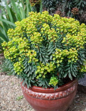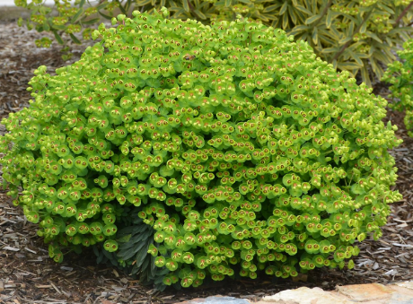 Generally no pruning required other than removal of spent flower stems to encourage bushy growth. When pruning use gloves as sap can be irritating to skin and eyes.