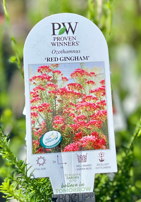 OZOTHAMNUS diosmifolius ‘Red Gingham’