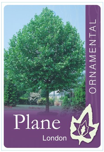 The London Plane is a very hardy large spreading tree that grows to a height of 20 metres. This tree has unusual bark of mottled greys and fawns that flakes off during Winter. It has large, thick, green leaves shaped similar to a Maple, changing to golds and browns in Autumn. Also of interest are the large bristly ‘seed balls’, usually produced in pairs in summer.