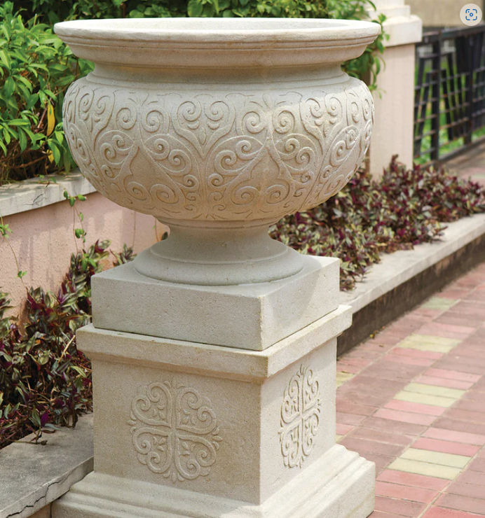Luxury in its element, the classic Renaissance Urn Pot and Pedestal is the pièce de résistance to manicured landscapes that command attention.